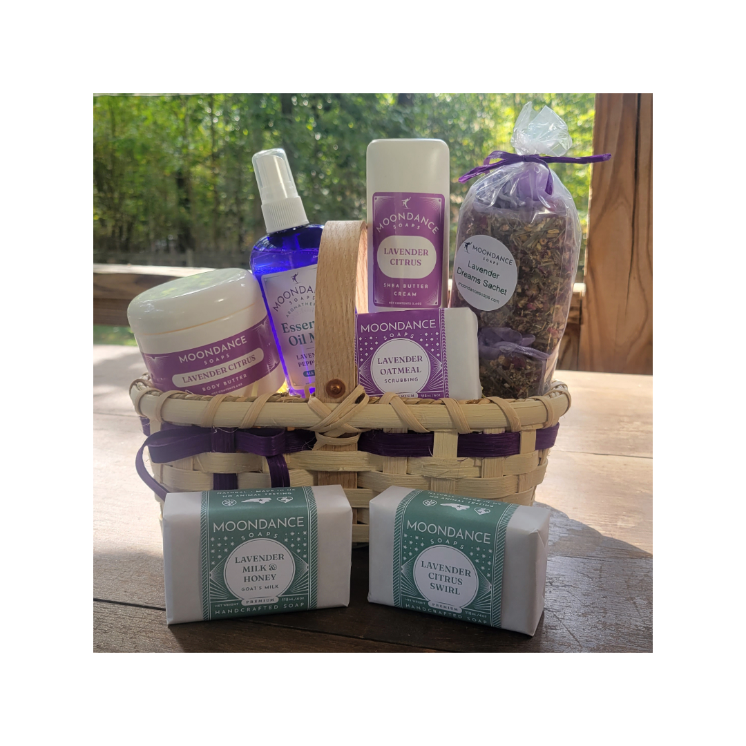 Send lots of love to someone with our Ultimate Thinking of You gift bundle. It’s loaded with everything they need to relax, including fragrant Lavender Dream sachets, Lavender Citrus shea cream lotion, Lavender & Mint aromatherapy mist, and 3 bar soaps (Lavender Citrus Swirl; Lavender, Milk & Honey; Lavender Oatmeal) and Lavender Citrus body butter. Our staff loves this one for bereavement and get well sentiments. But really, anyone who loves lavender would be genuinely touched to receive this.